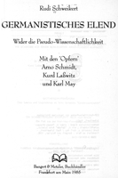 | D-1594 - Bibliogr. Daten überprüft Informationen: Karl-Eugen Spreng Kein Online-Text bekannt. [P-527] Rudi Schweikert GERMANISTISCHES ELEND / Wider die Pseudo-Wissenschaftlichkeit Mit den 'Opfern' Arno Schmidt, Kurd Lasswitz und Karl May Bangert und Metzler: Frankfurt am Main - 1985 Taschenbuch - Höhe: 20,8 cm - 125 Seiten | ![]() ![]() | |||||